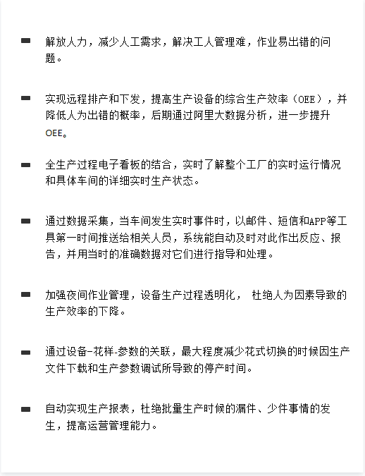 横机物联 通过云边端的协同管理,实现淘工厂产能数字化,有效提升产能,缩短交付周期, 最终实现供、研、产、销、能、环等全链路智能管理,并打通淘工厂, 有效合理安排忙时闲时的设备利用率