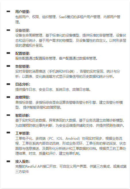 基础物联平台提供如下能力